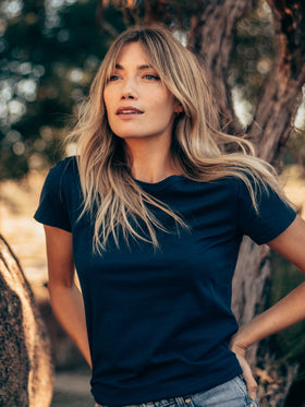 A classic foundational piece and the staple of every wardrobe in eco-conscious 100% organic cotton for added softness and breathability. Forget the restrictive, boxy tees. Enjoy the roomier crew neckline and our signature curved hem for a closer, more feminine fit. Go ahead, wear it every day. We're not judging.